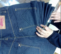 步驟1:把褲子正面鋪平取褲子
