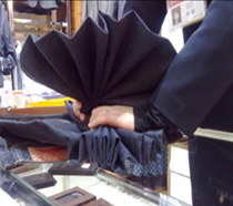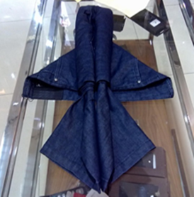 針對這一弱勢,很多店都會選擇搭配上衣、包包、畫框或者鞋子來解決這些問題,或者單獨去買一些飾品來裝飾店面效果。其實利用褲子本身就可以變換出各種各樣的造型來裝點整個賣場,即襯托了店面的陳列效果,又展示了褲子本身的美感,會更加的吸引顧客的眼球。因此就讓我們來學(xué)習(xí)幾種實用的褲子花樣折疊方法吧